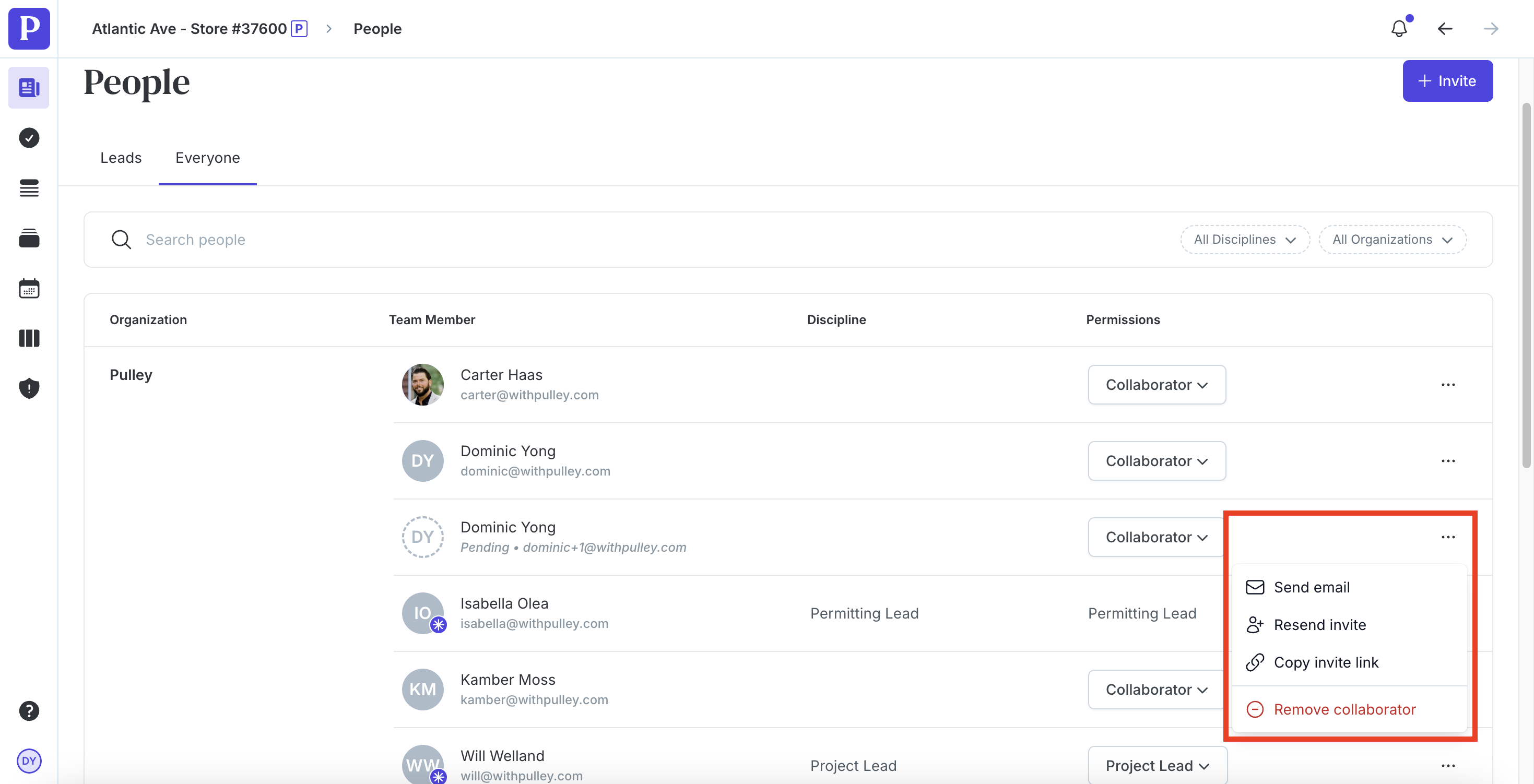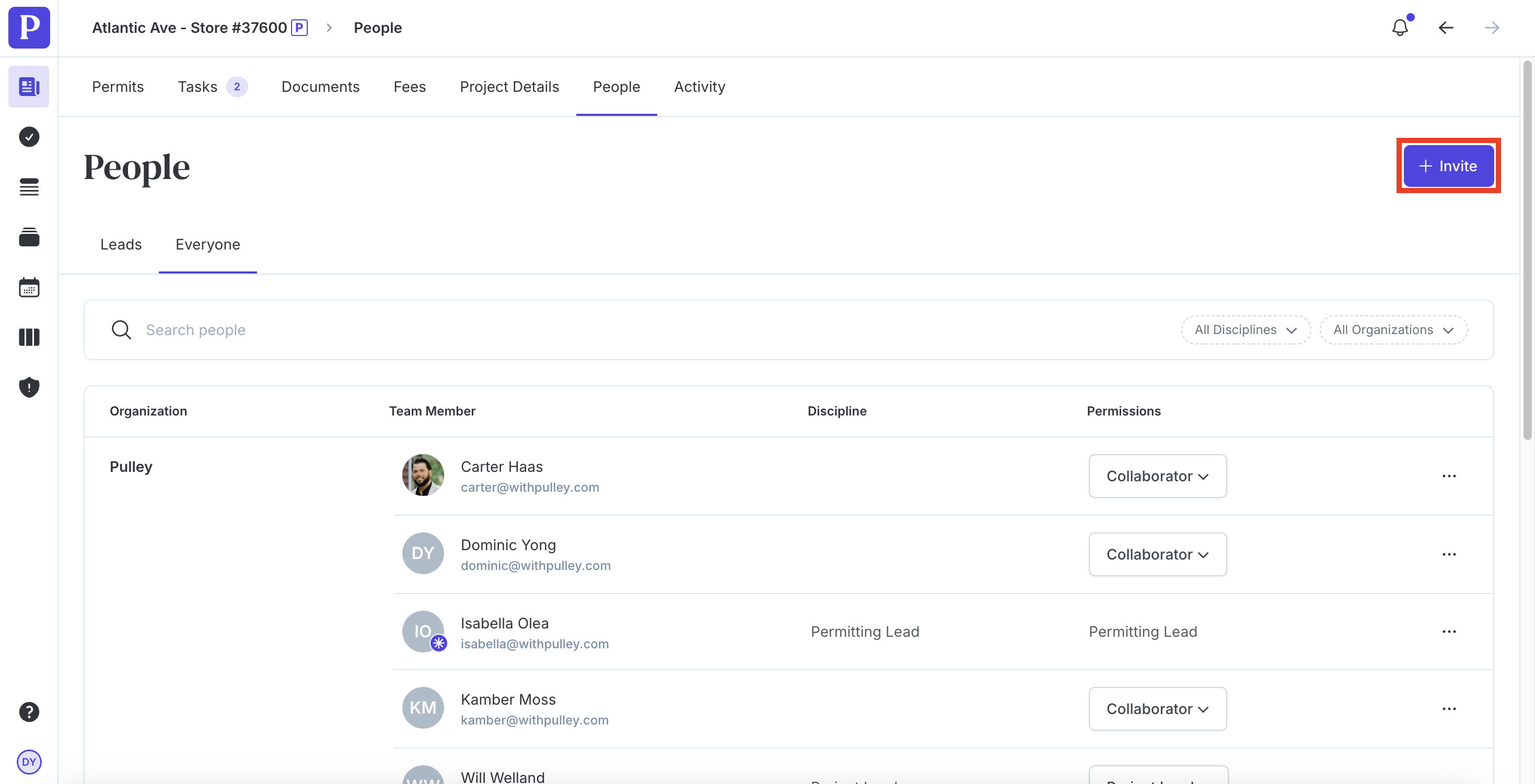 Click +Invite in the top right corner and fill out the invite form.