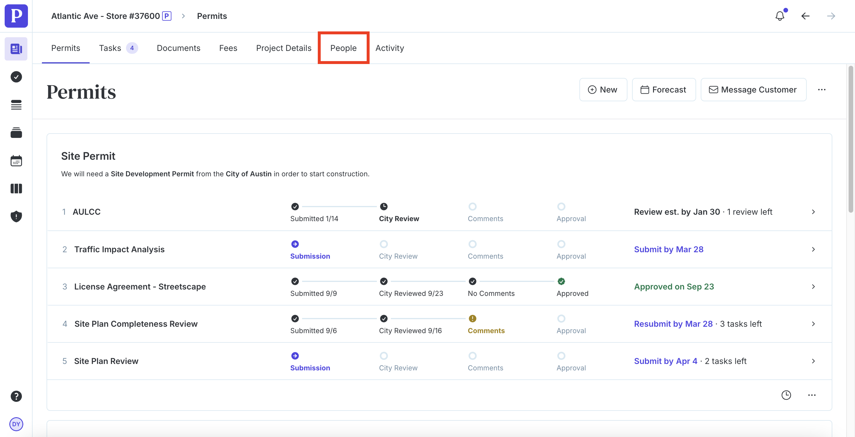 Click the People tab in the row of options below your project name at the top.