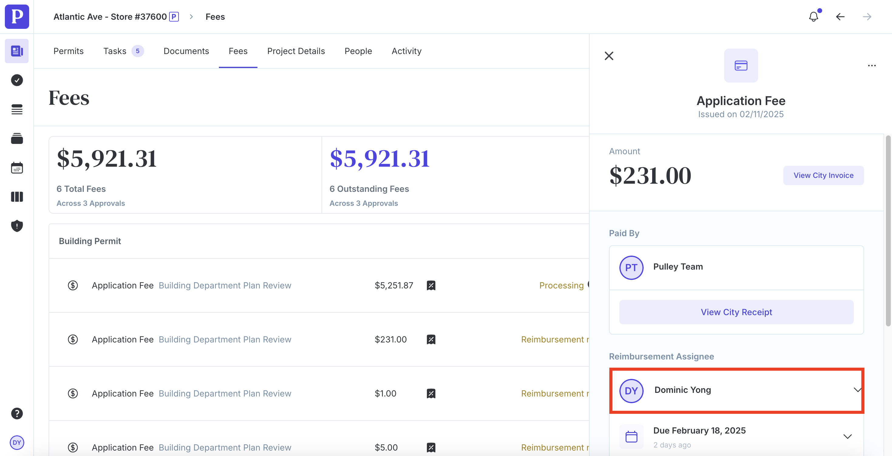 Click the name under Reimbursement Assignee and select the person you'd like to assign the task to.