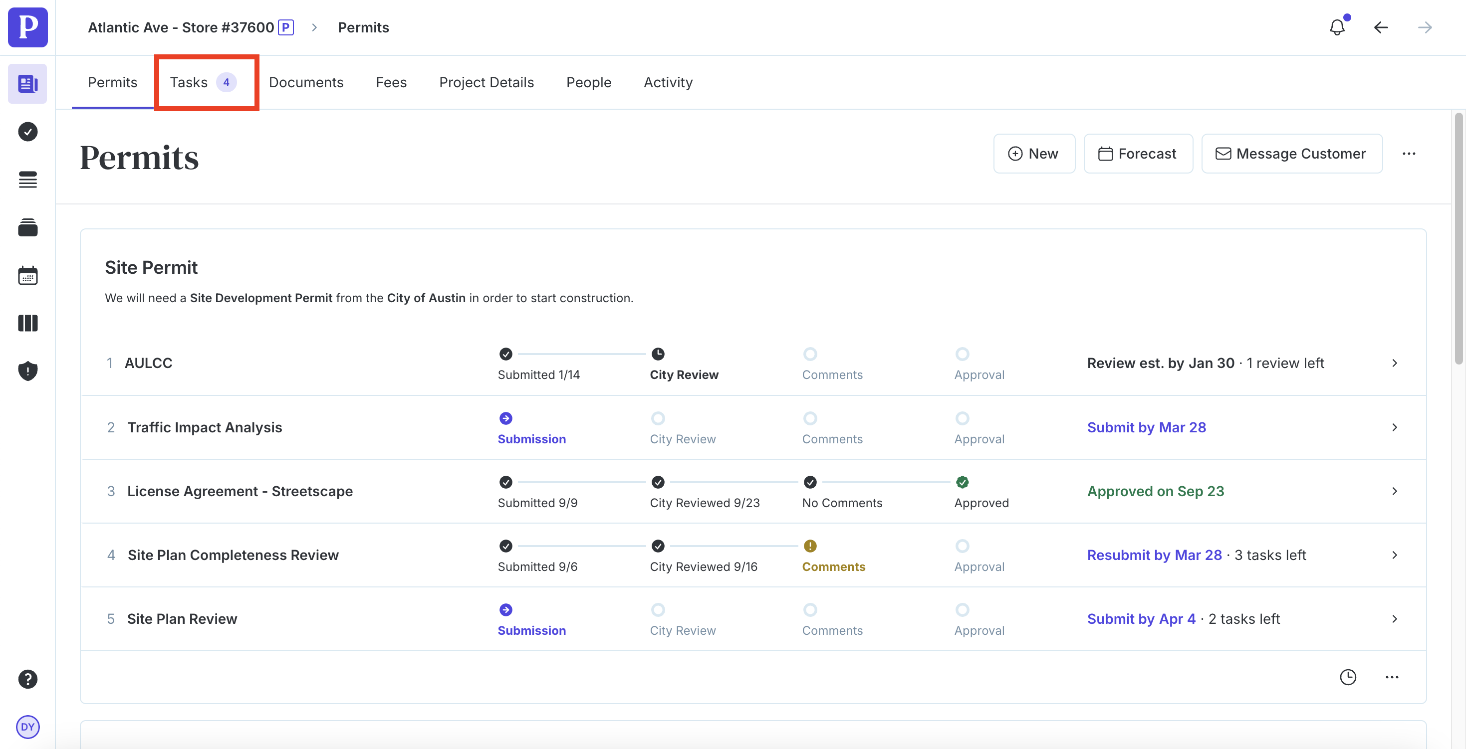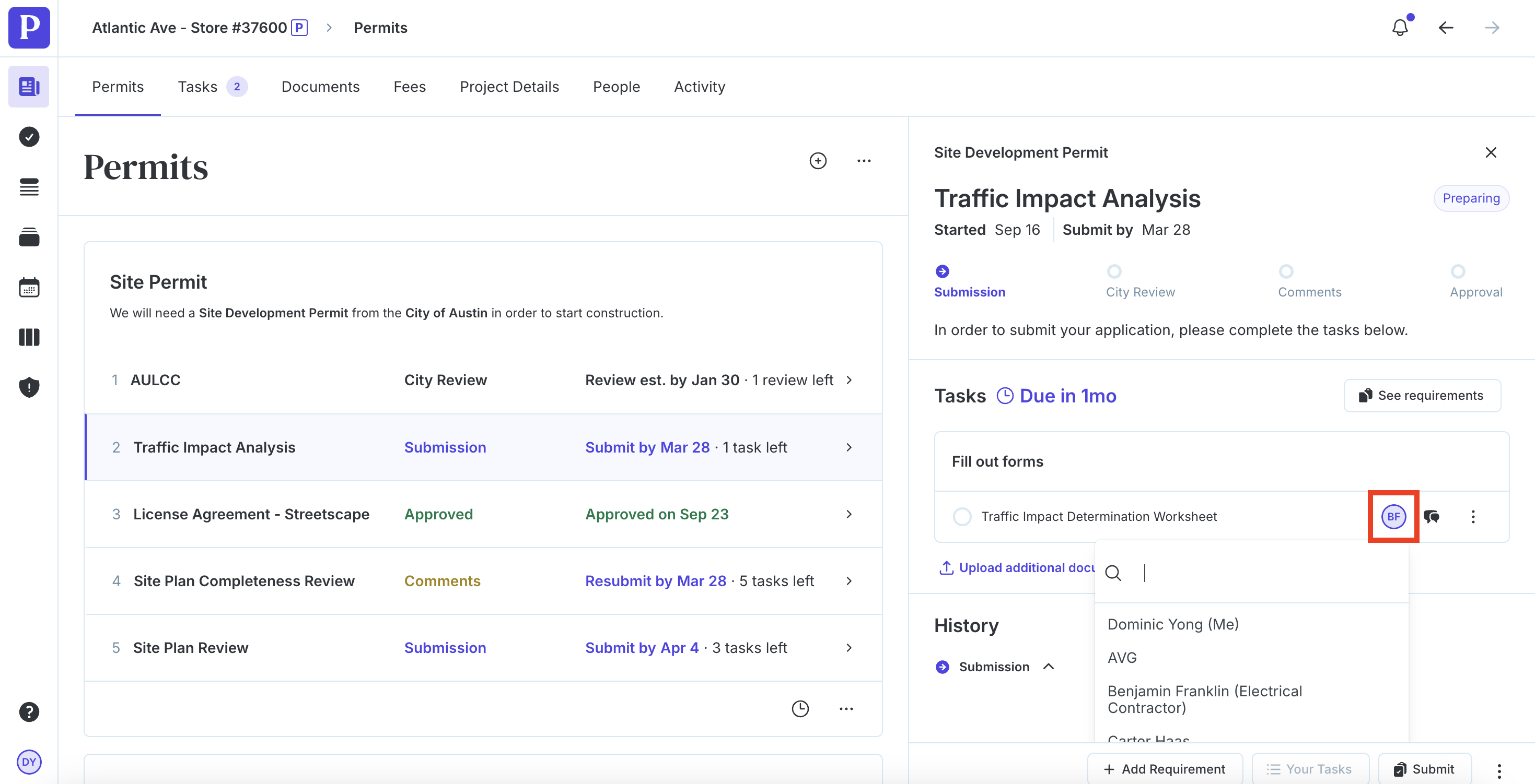 Alternatively, you can assign some tasks from the Permits view. Start by selecting the relevant project from your Portfolio overview.