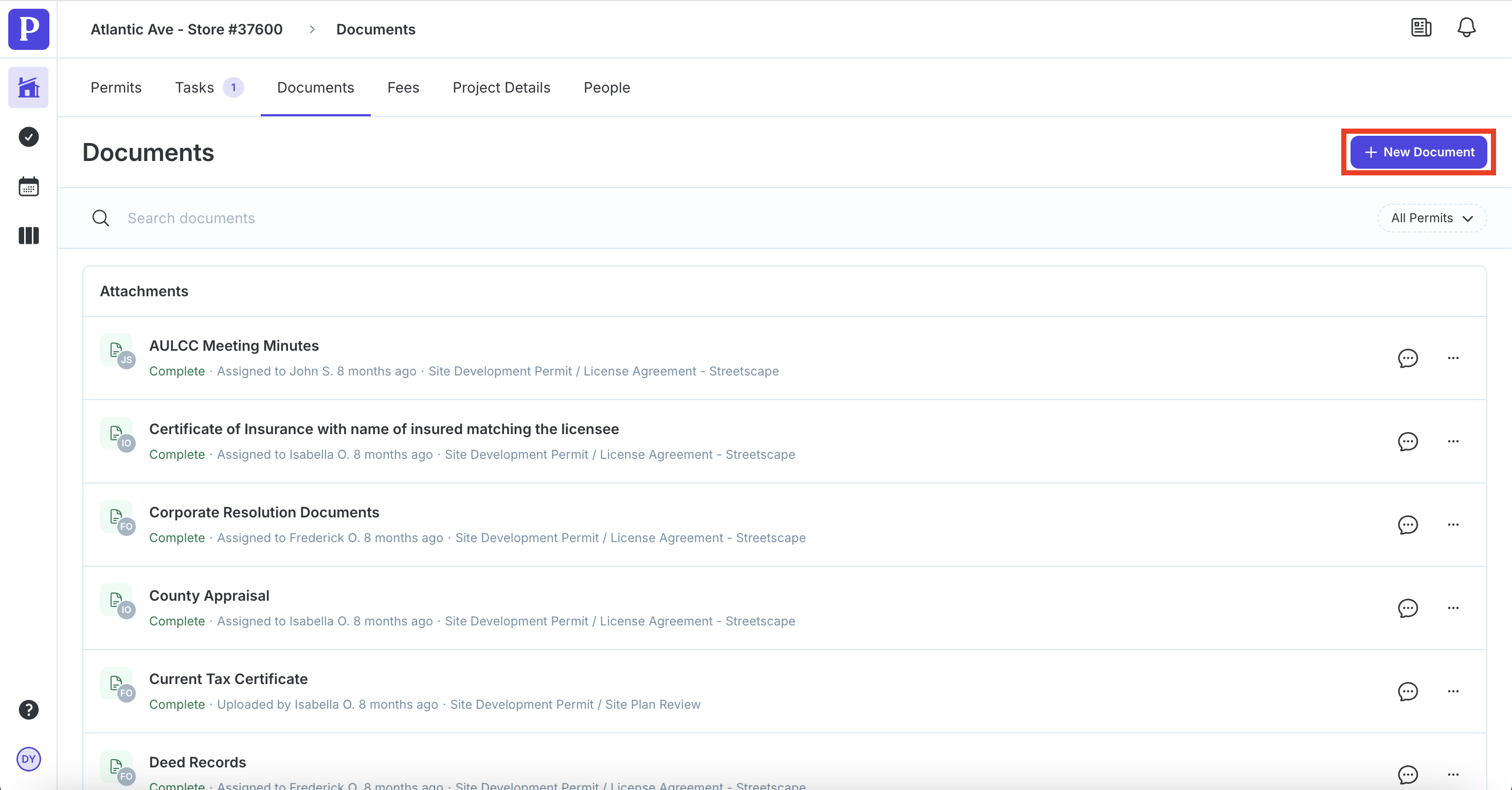 Click the Documents tab in your project.