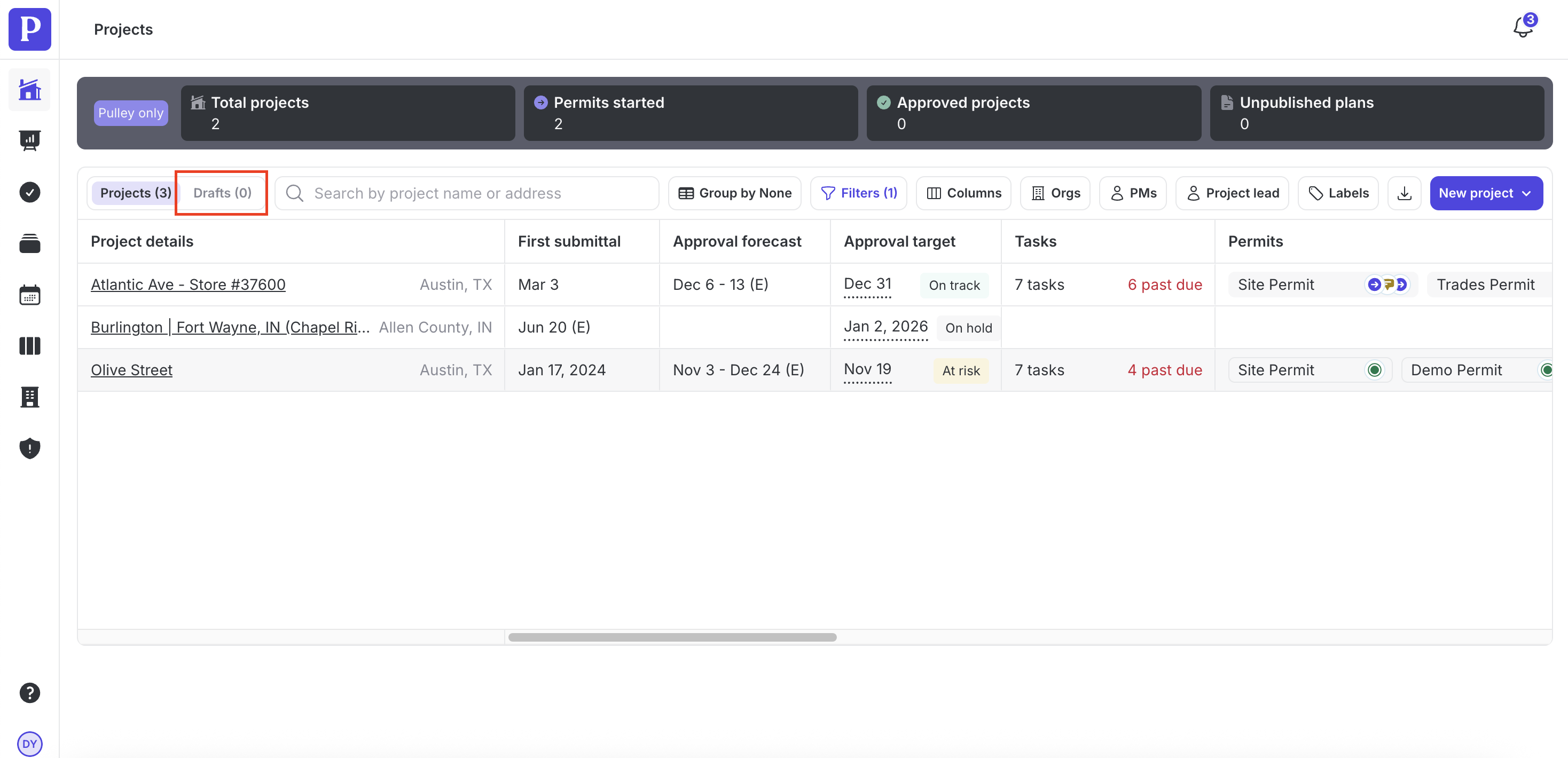 You can find the created draft project in the Drafts tab in your Projects overview.