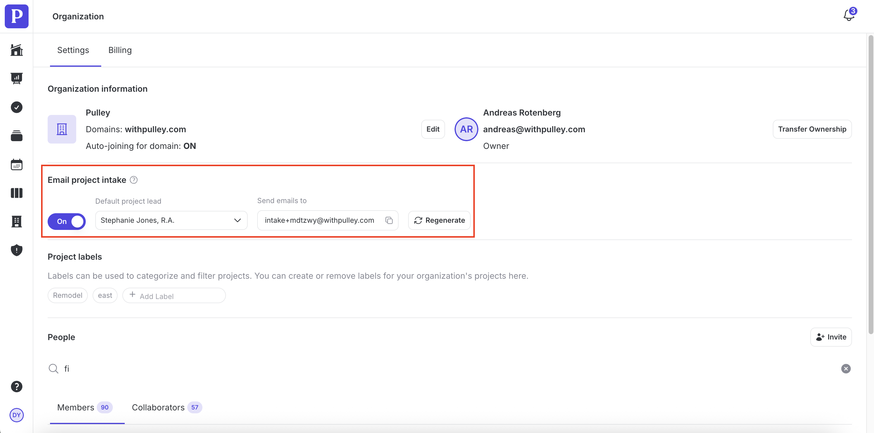 In addition to being able to submit a project into intake through the product, you can also email the project details to Pulley. This is great for teams that have project details in a different system and can set up automations to send project details by email.
